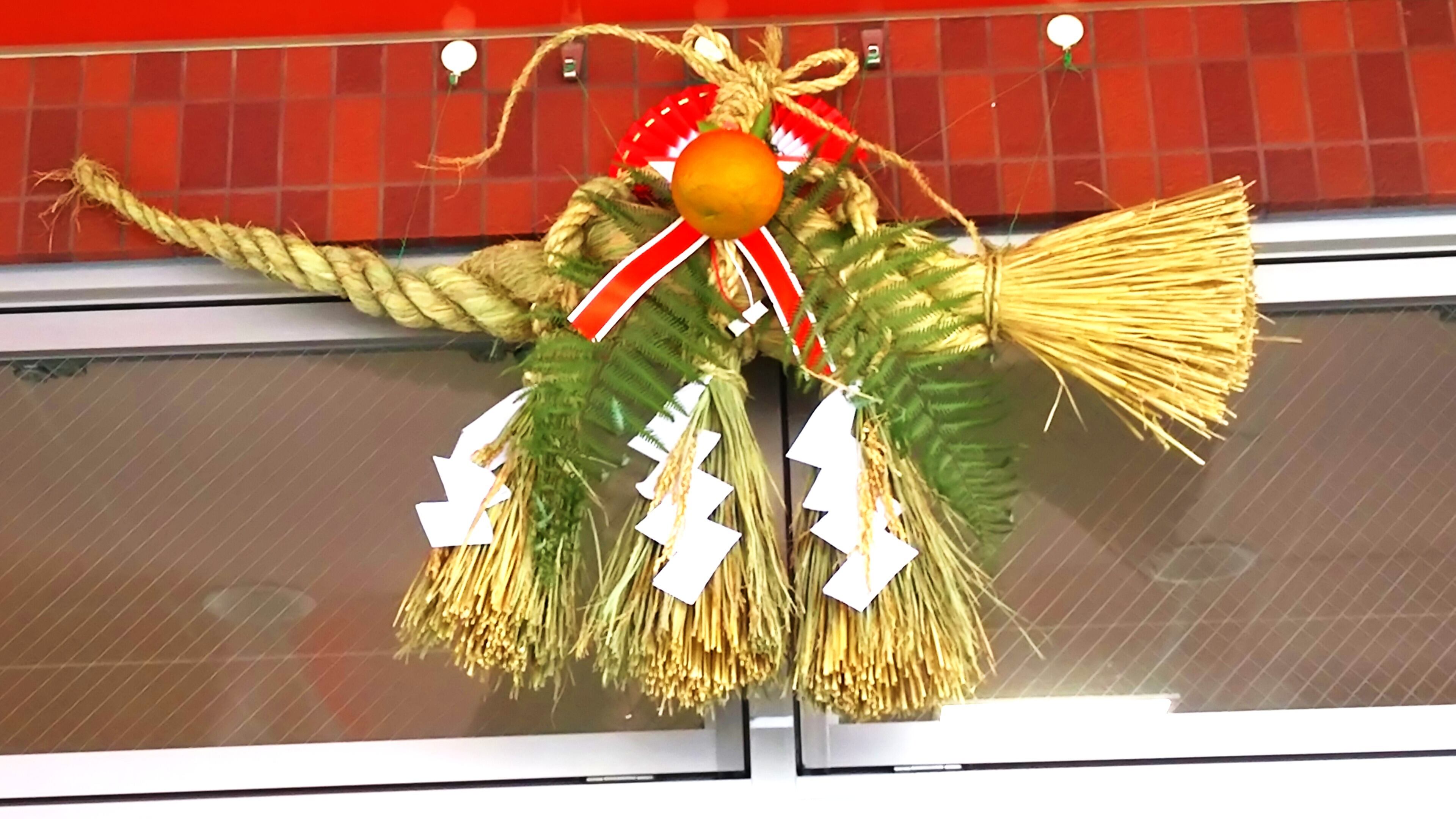新しい年の訪れを祝う存在として、邪気を建物内に入れないための結界としてのしめ飾りを 玄関上にいかがでしょう?